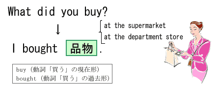 (スーパー・デパートで)何を買ったか、の問いに答えましょう。