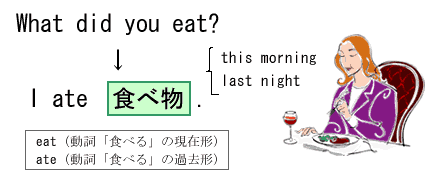 (今朝・昨日の夜)何を食べたか、の問いに答えましょう。